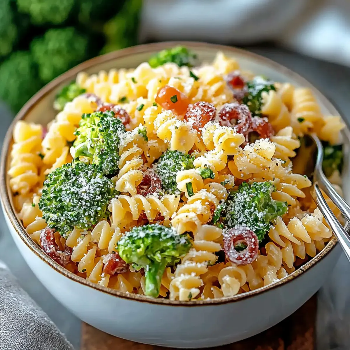 Simplicity makes this Broccoli Pasta Salad a breeze to prepare. Customizable options allow you to express your creativity, whether you add protein or switch dressings. Nutritional power shines through with fiber-rich broccoli and hearty pasta, making it a filling yet healthy choice. Crowd-pleasing appeal ensures it’s perfect for potlucks or cozy family dinners. With just a quick chill time, you can whip it up ahead of your gatherings and impress everyone with a vibrant, delicious dish!