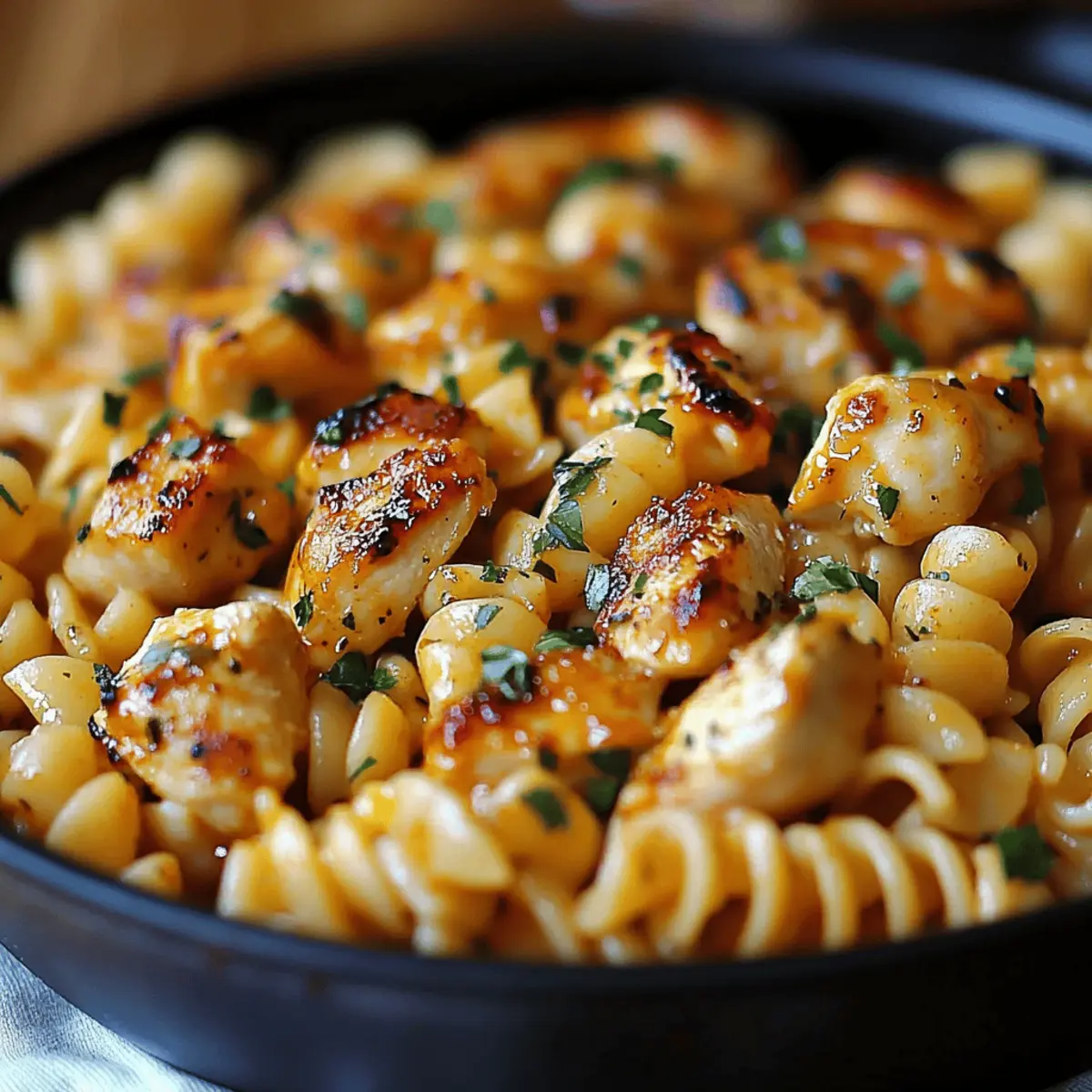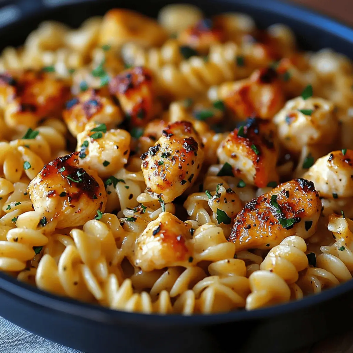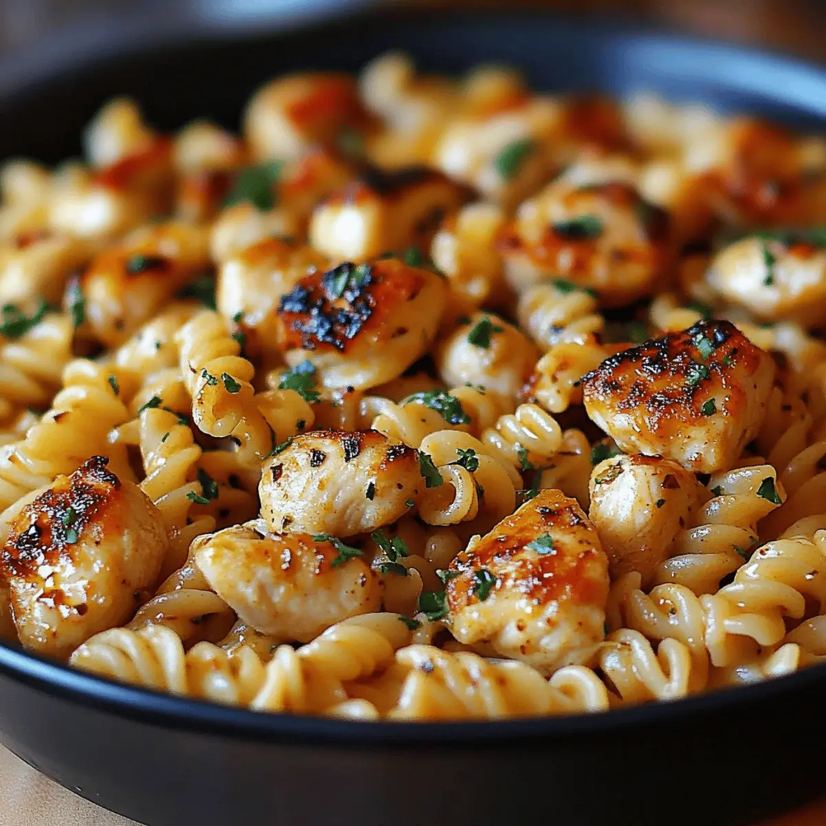 Finally, return the cooked chicken to the skillet and sprinkle with freshly chopped parsley for a burst of color and freshness. Mix gently until everything is heated through. The vibrant colors and inviting aroma signal that your Cajun Garlic Chicken Rotini is ready to be served.