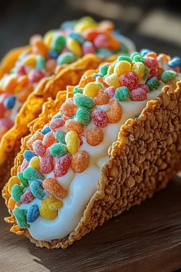 Indulgent Fruity Pebbles Cheesecake Tacos for Sweet Fun