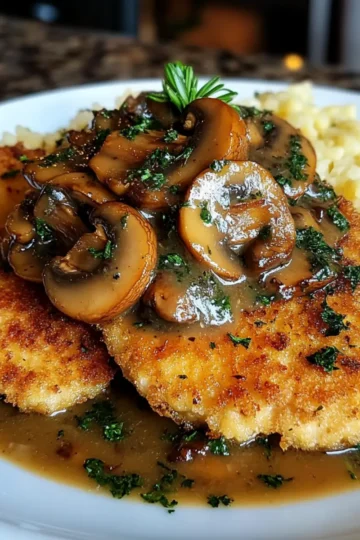 Irresistibly Crispy Chicken Schnitzel with Mushroom Gravy