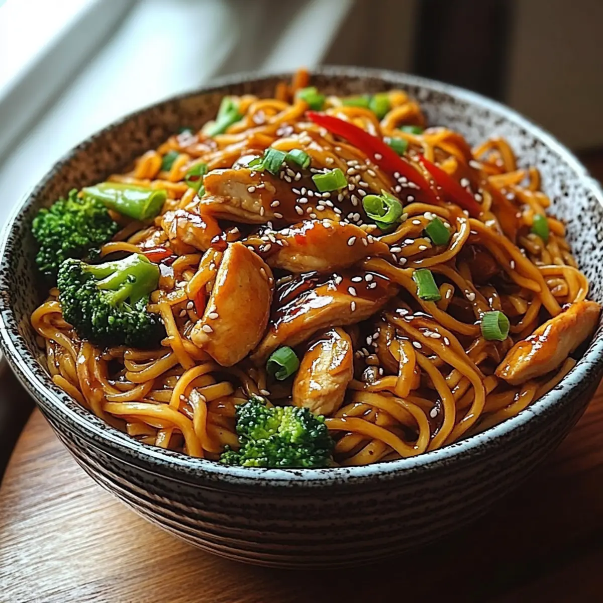 To finish off your Chicken Teriyaki Noodles, serve the dish warm in bowls. Sprinkle sesame seeds and chopped green onions on top for an extra touch of flavor and crunch. Enjoy this delightful meal that encapsulates the vibrant essence of a quick and satisfying dinner, perfect for any weeknight!