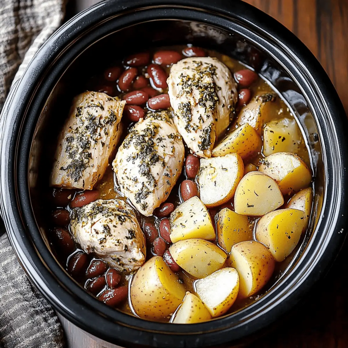 As I walked into my kitchen, the warm, savory aroma wrapped around me like a bear hug, instantly melting away the day’s stress. That's the magic of my Crockpot Chicken Potatoes Beans. This dish brings together tender chicken, creamy potatoes, and hearty beans, simmering in a rich broth that beckons you to unwind and savor every bite. Not only is this recipe incredibly easy to prepare—perfect for busy weeknights—but it also creates a cozy meal that warms the heart and soul. Whether you're feeding a family or hosting friends, it's a crowd-pleaser that promises to elevate any dining experience with minimal effort. Intrigued? Let’s dive into the details!