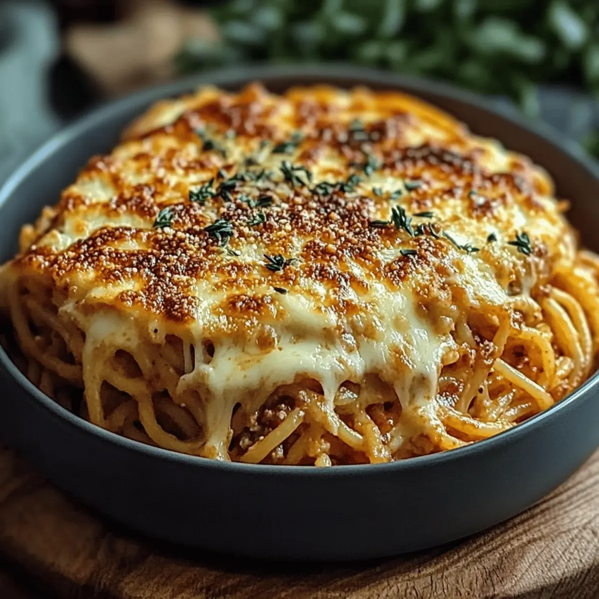Preheat your oven to 350°F (175°C). In a greased baking dish, spread half of the creamy spaghetti mixture evenly across the bottom. Follow this with half of your meat sauce, and sprinkle 1 cup of shredded mozzarella cheese on top. Repeat these layers for a hearty, satisfying finish.