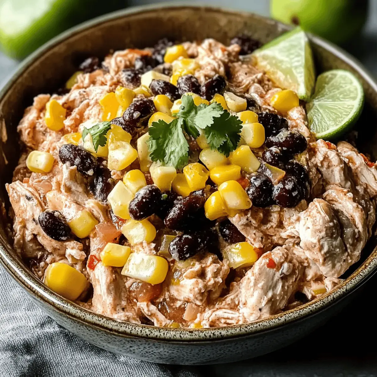 Preparing your Crockpot Fiesta Chicken ahead of time is a fantastic way to save time during busy weeknights! You can chop and combine all your ingredients—such as the chicken, black beans, corn, diced tomatoes, and taco seasoning—up to 24 hours in advance. Just store them in an airtight container in the refrigerator. To keep the chicken juicy, add the broth only right before cooking. On cooking day, place everything in the crockpot, cover, and set it to cook. Once it's done and you shred the chicken, mix in the cream cheese for that lovely creamy finish. This method helps you enjoy home-cooked comfort food without the stress!