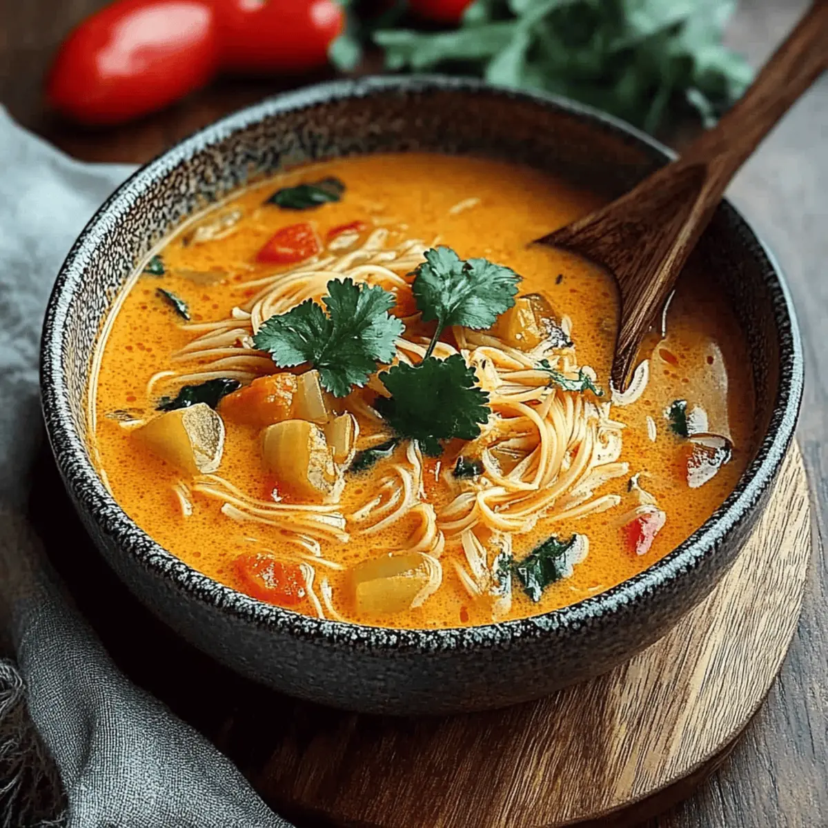 Discovering new flavors and ingredients can transform this comforting dish into an entirely new experience each time you make it! Looking to explore more culinary adventures? Check out my tips on how to store and freeze Thai Coconut Curry Soup for meal prepping or pairing suggestions with crusty bread that perfectly complements the warm embrace of your soup.