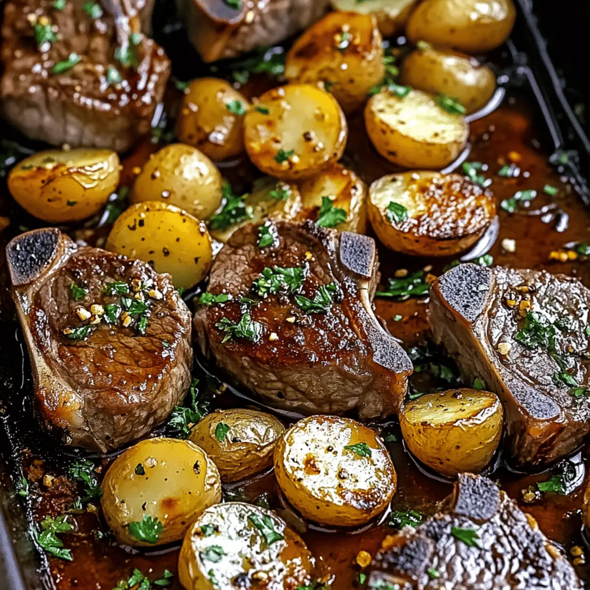 Yukon Gold or red potatoes are fantastic choices for this Easy Sheet Pan Beef Chops & Potatoes recipe due to their creamy texture when roasted. If you're looking to add a twist, sweet potatoes are a great alternative that brings a hint of sweetness to the dish.