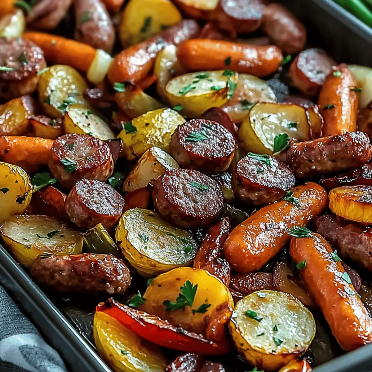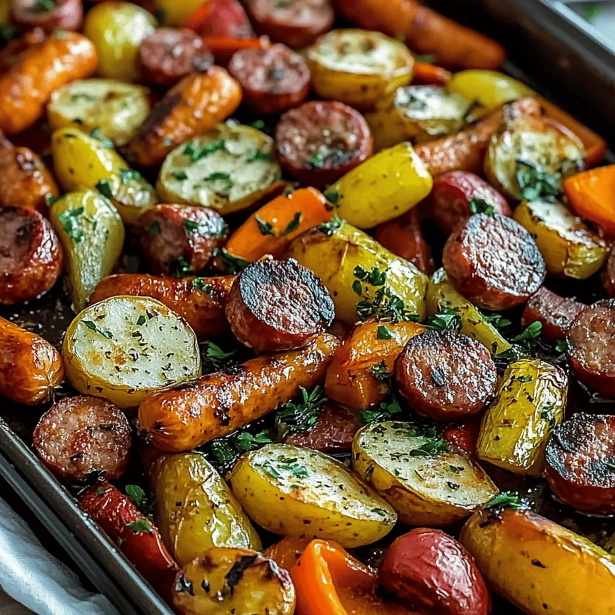 As I rummaged through my fridge, I stumbled upon a delightful combination of beef sausage and colorful veggies waiting to be transformed into an easy dinner. That's when I decided to whip up my favorite Sheet Pan Beef Sausage Veggies. This one-pan meal is not only a lifesaver for busy weeknights, but it also brings a vibrant array of flavors and textures to the table with minimal cleanup. Say goodbye to the chaos of fast food nights and hello to a hearty, wholesome dinner that’s sure to impress family and friends alike. Plus, it’s incredibly adaptable—you can easily swap in whatever seasonal veggies you have on hand. Are you ready to turn dinner into a stress-free celebration?