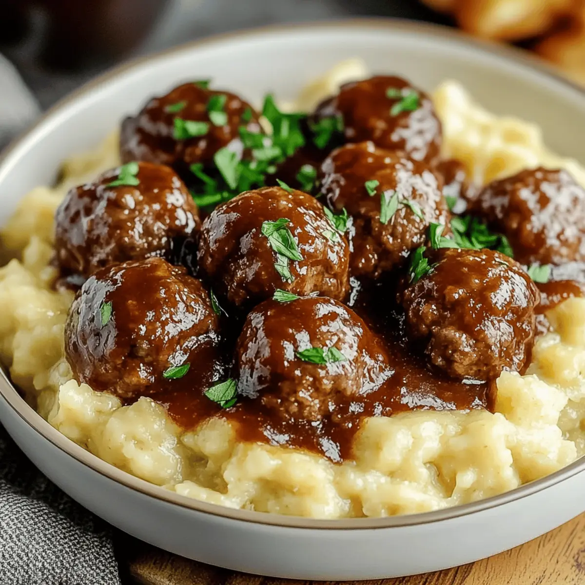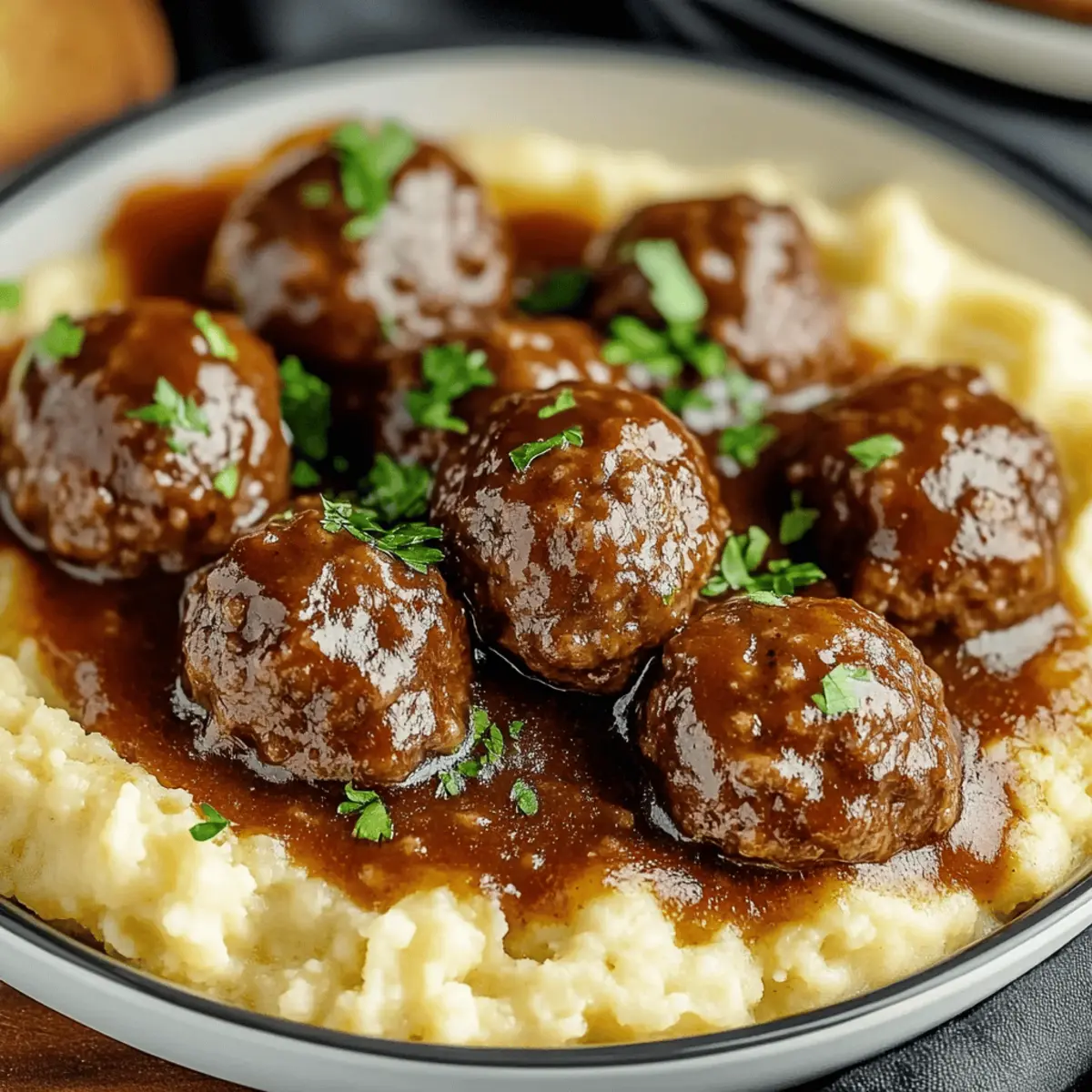 - Serve the meatballs over fluffy mashed potatoes, rice, or noodles, garnished with fresh parsley if desired.