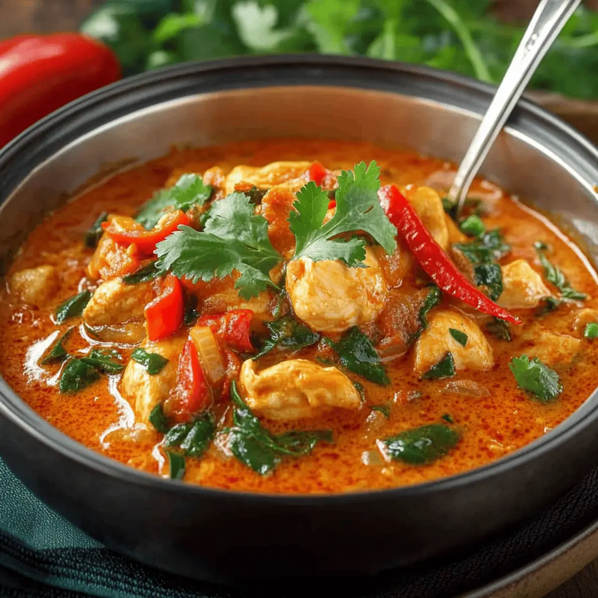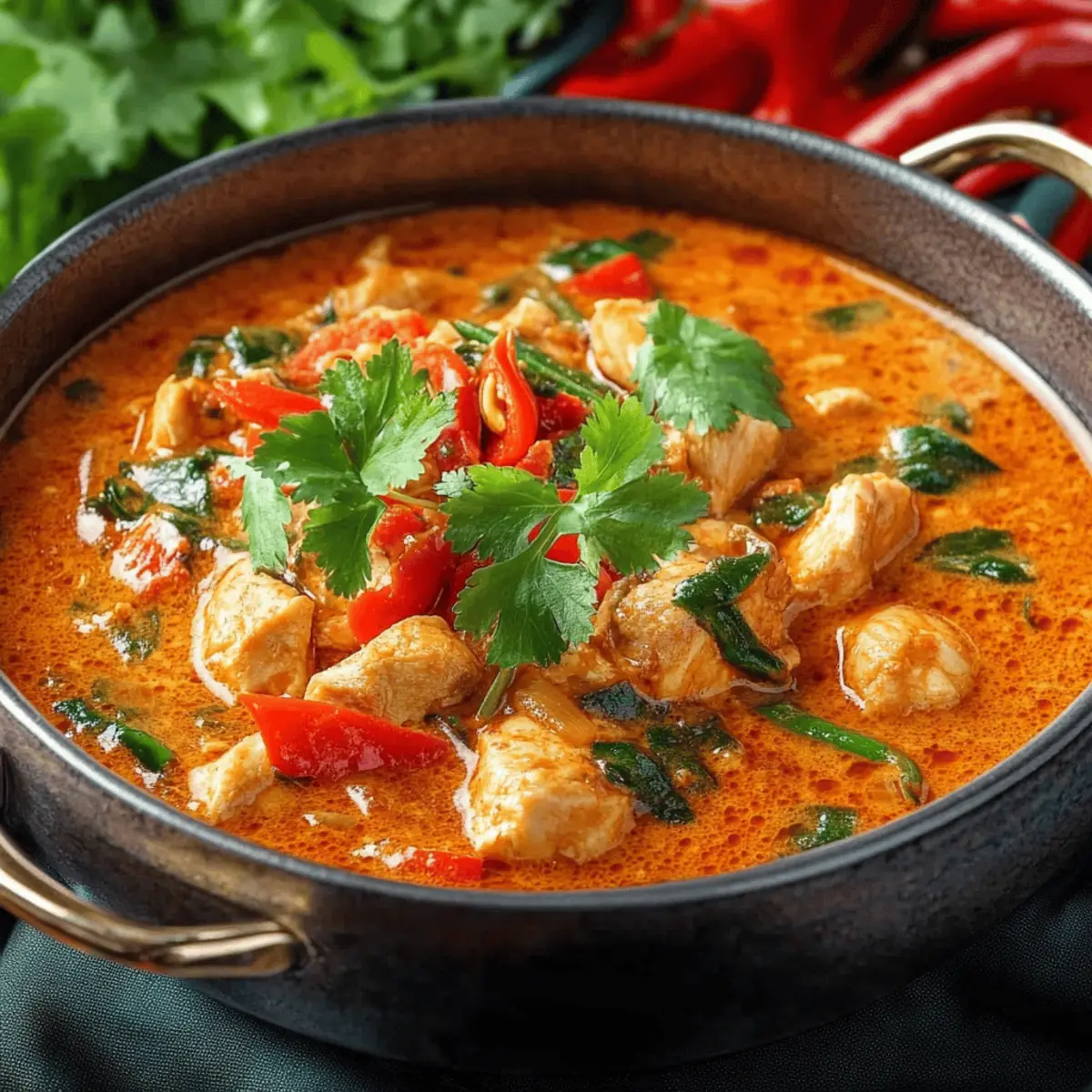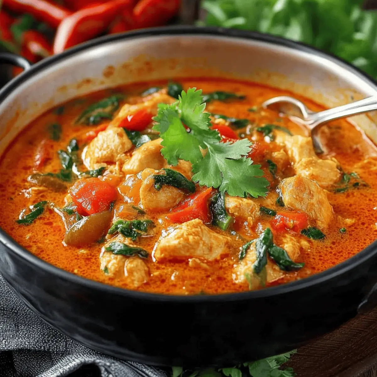 These Easy Thai Red Curry Chicken preparations are perfect for busy home cooks looking to save time during the week! You can prepare the homemade curry paste up to 3 days in advance by blending all the paste ingredients and storing it in an airtight container in the refrigerator. The chicken can also be seasoned and marinated up to 24 hours ahead, which locks in the flavors beautifully. When you’re ready to cook, simply sauté the curry paste, add the coconut milk, chicken broth, and prepped chicken, then follow the recipe as directed. This not only makes your Monday evenings easier but ensures your family enjoys a delicious meal packed with flavor every time!