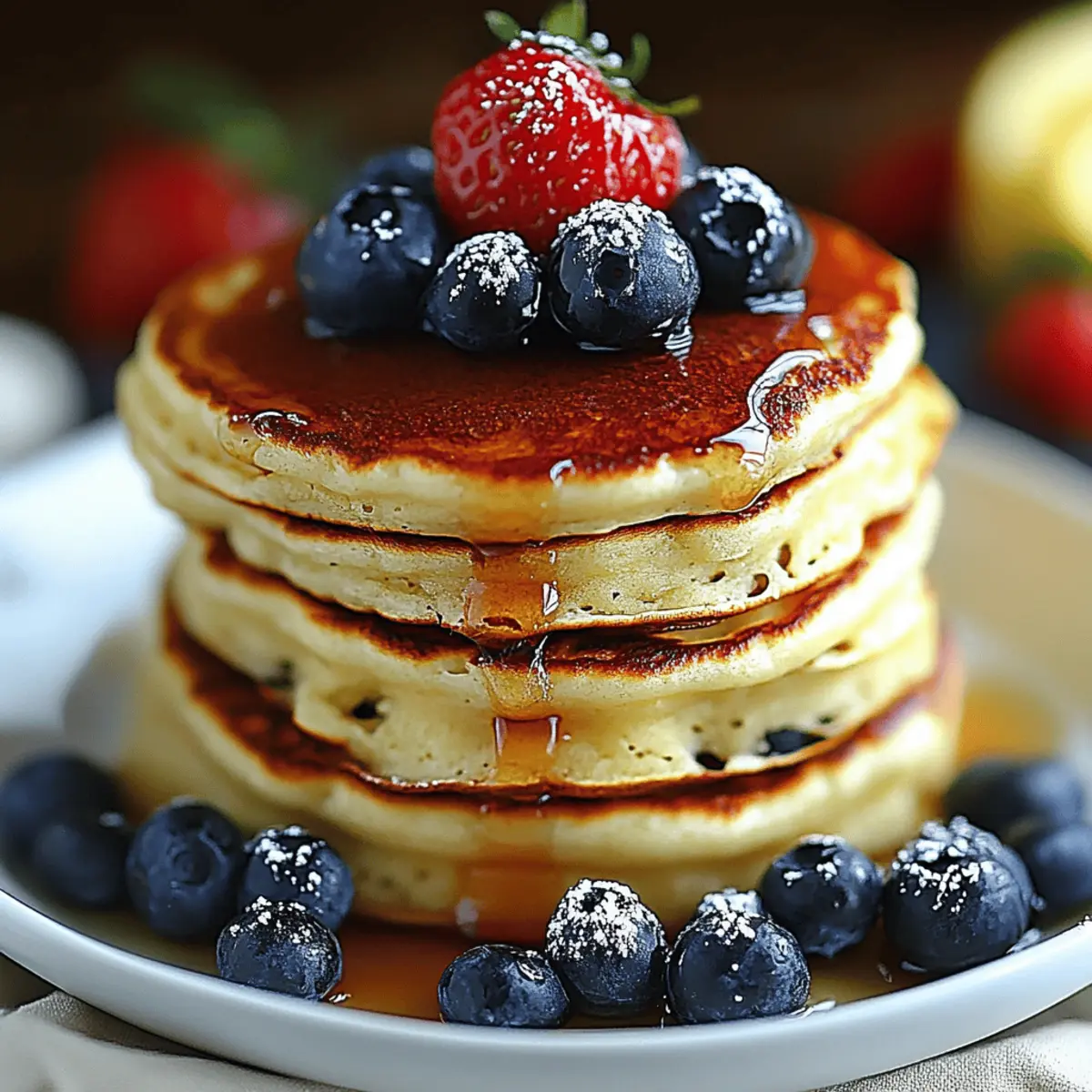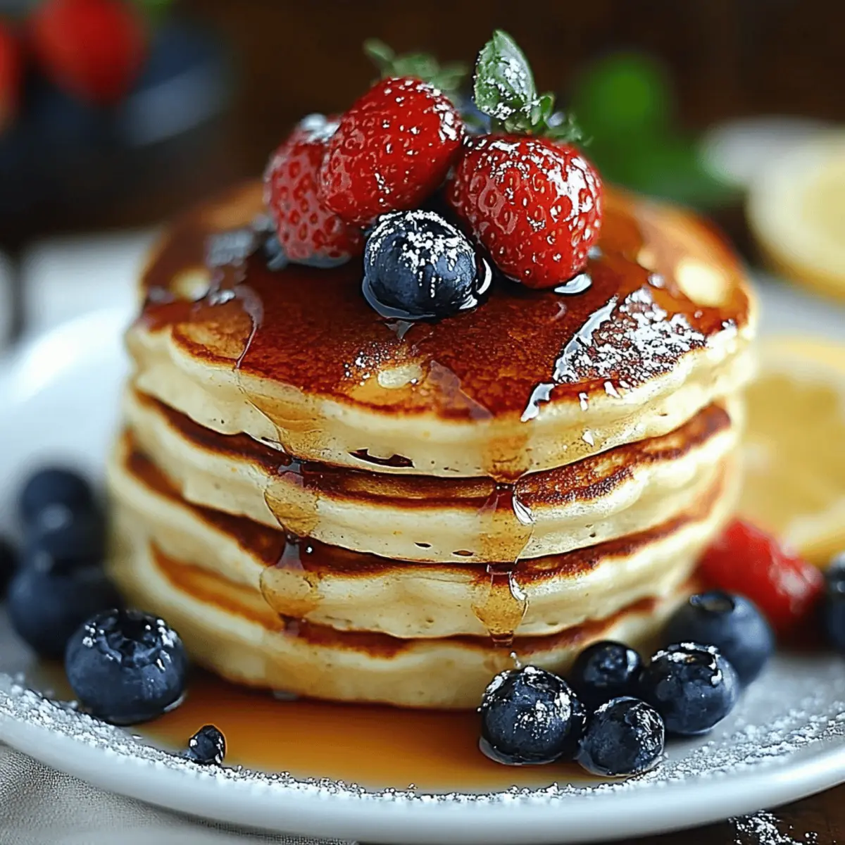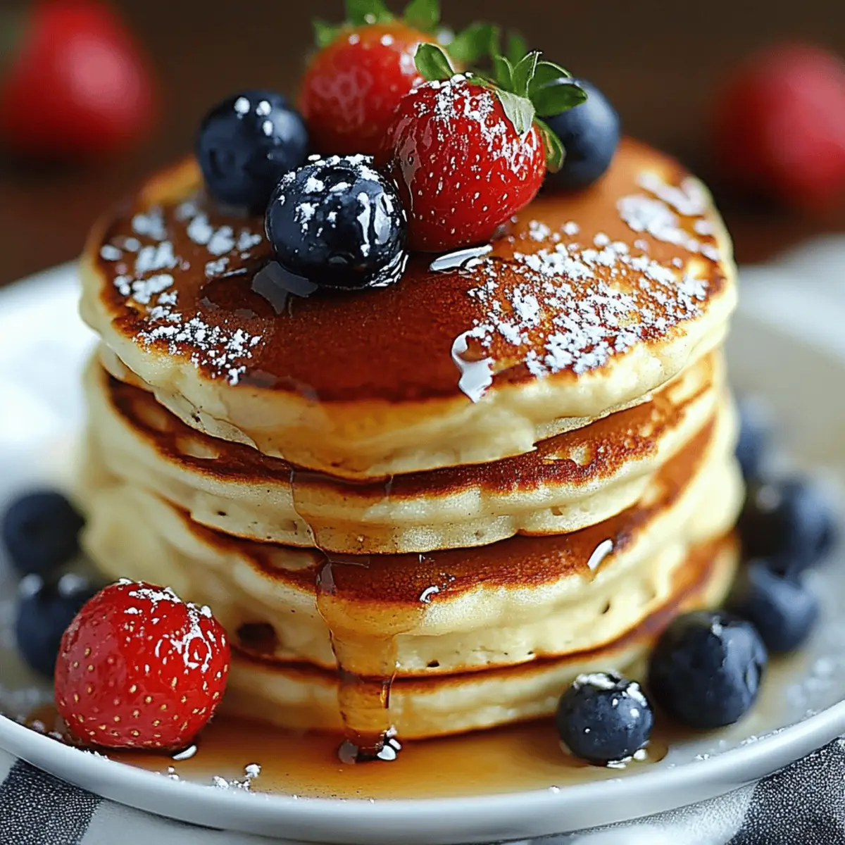 Once all pancakes are cooked, dust with powdered sugar, top with fresh berries, and drizzle with maple syrup. The vibrant colors and flavors invite everyone to indulge. These fluffy pancakes are not just a meal; they’re a delightful celebration of breakfast!