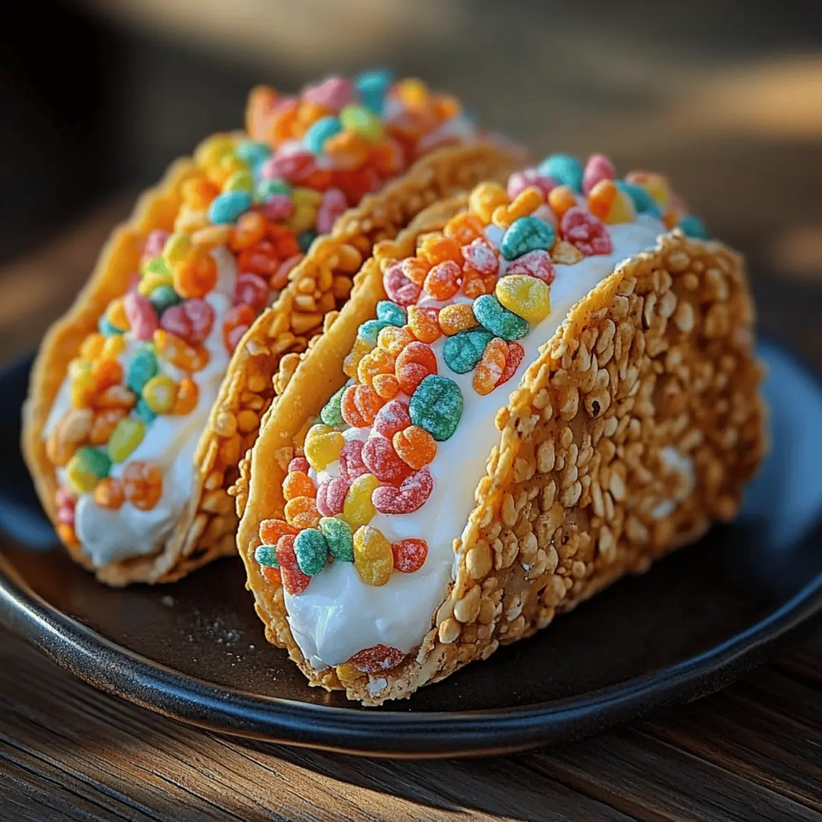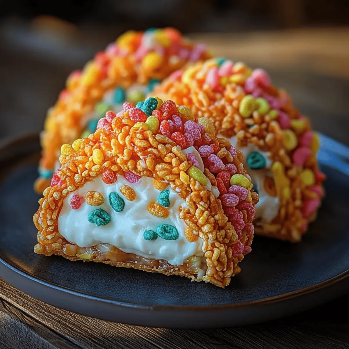 Vibrant Colors: With the lively hues of Fruity Pebbles, these tacos are not only delicious but also a feast for the eyes, making them a hit at any gathering.