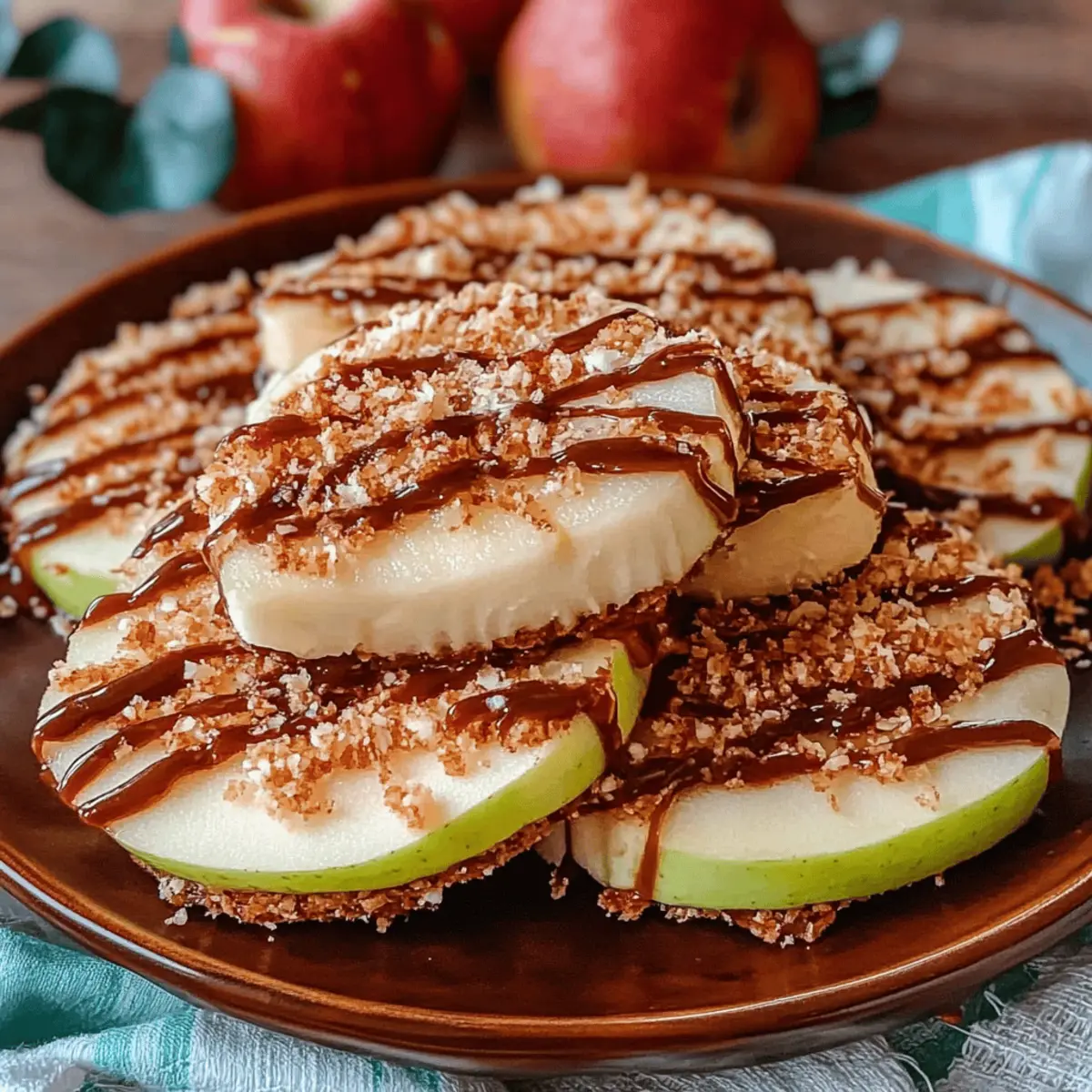 Drizzle the warm apple slices generously with caramel sauce, allowing it to pool slightly for a decadent finish. Then, sprinkle toasted coconut over the top, making sure every slice is generously covered. The combination of textures will enhance the irresistible nature of your Samoa Apple Slices.