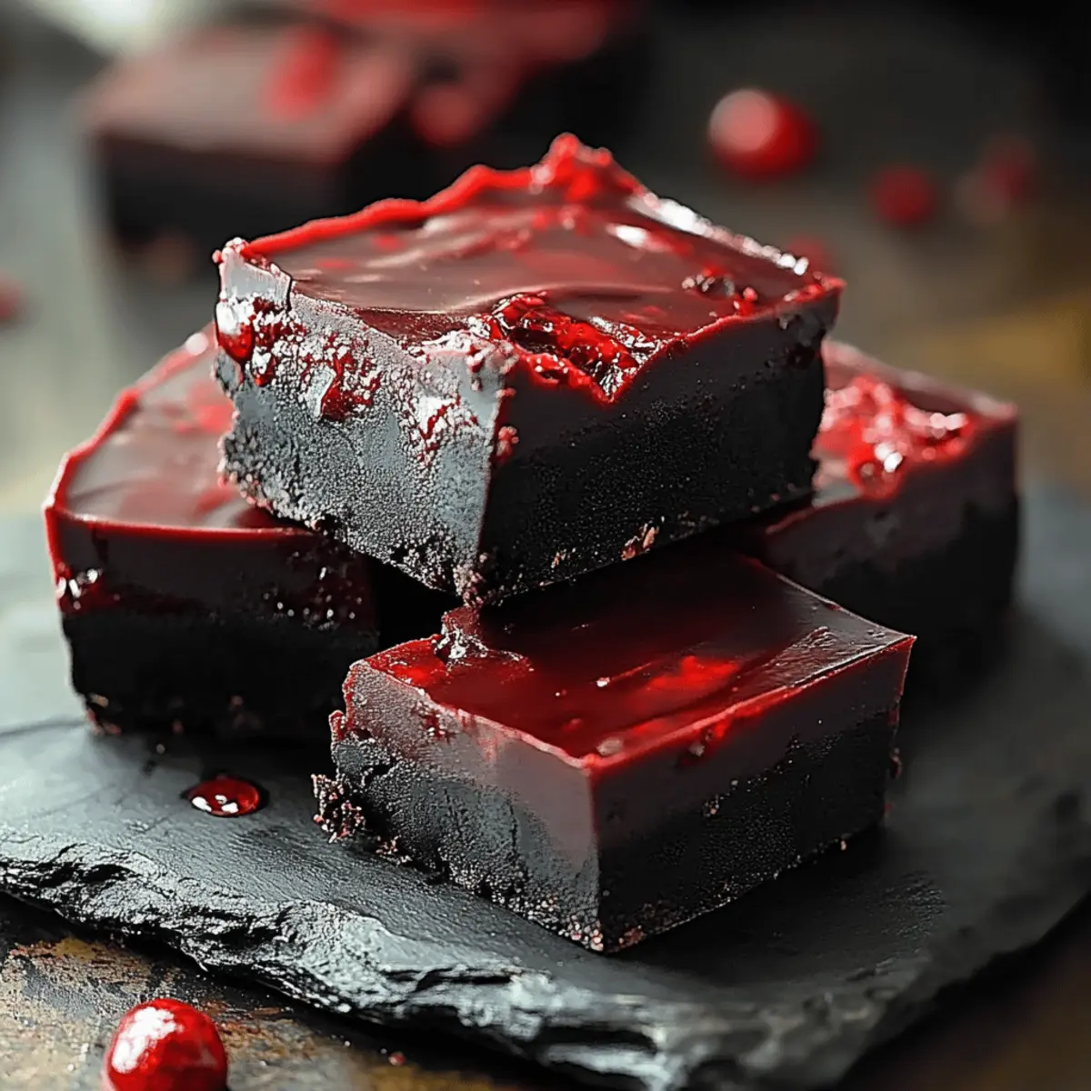 Decadent flavors come together in this indulgent fudge, satisfying any chocolate lover’s cravings. Visually striking with its eye-catching crimson swirl, it’s perfect for Halloween festivities or themed gatherings. Quick and easy to make, it requires minimal effort for maximum impact—ideal for busy hosts. Pair it with a scoop of ice cream for a delightful contrast or serve with coffee for a sophisticated touch. With its creamy texture and bold flavors, this dessert is sure to please everyone, young and old alike!