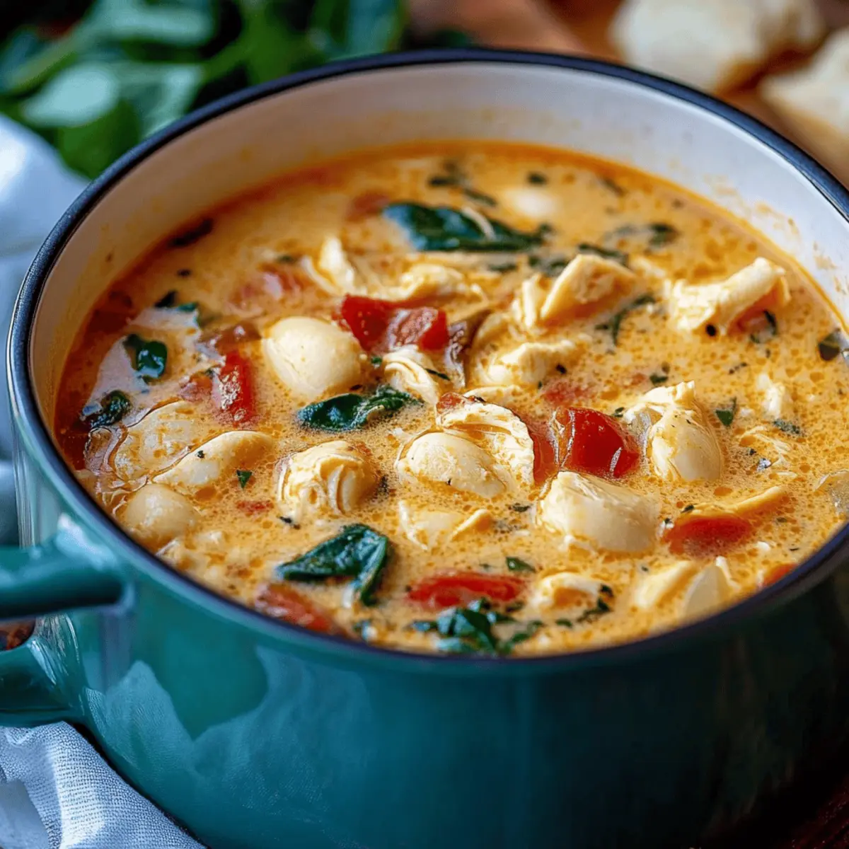 Preparing Marry Me Chicken Soup in advance is a fantastic way to save time during your busy week! You can chop the onions, mince the garlic, and prepare the sun-dried tomatoes up to 3 days before cooking. Store these ingredients in airtight containers in the refrigerator to keep them fresh. If you want to prep even more, cook the soup completely and let it cool before refrigerating it for up to 3 days. When you're ready to serve, simply reheat the soup on the stove and stir in the cooked pasta and spinach just before serving for that fresh taste. This will allow you to enjoy a comforting, home-cooked bowl of Marry Me Chicken Soup with minimal effort on hectic days!