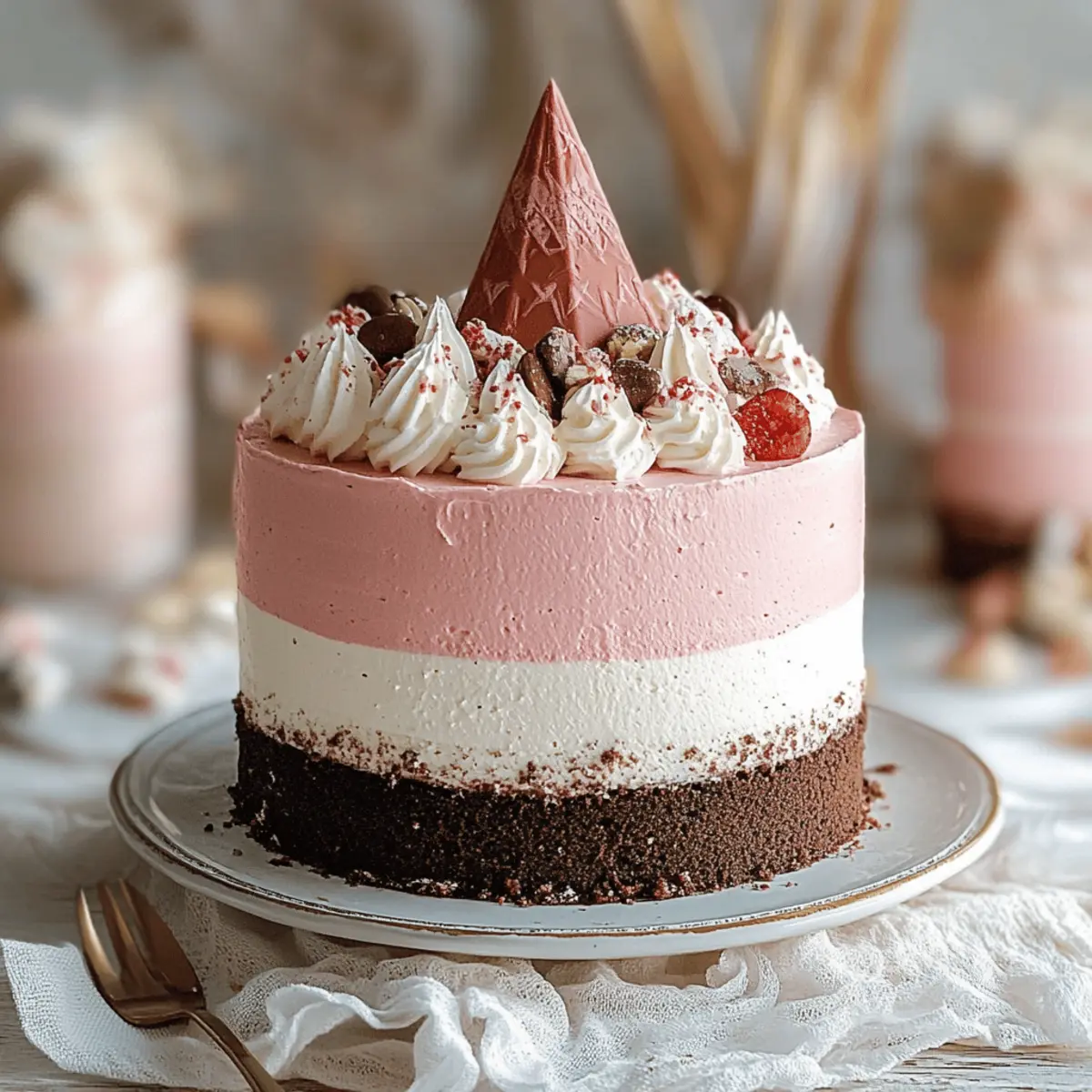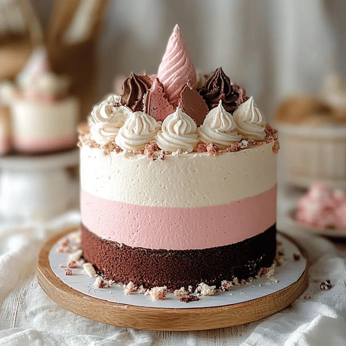 Irresistible flavors: This cake combines rich chocolate, creamy vanilla, and vibrant strawberry layers for an unforgettable taste experience.