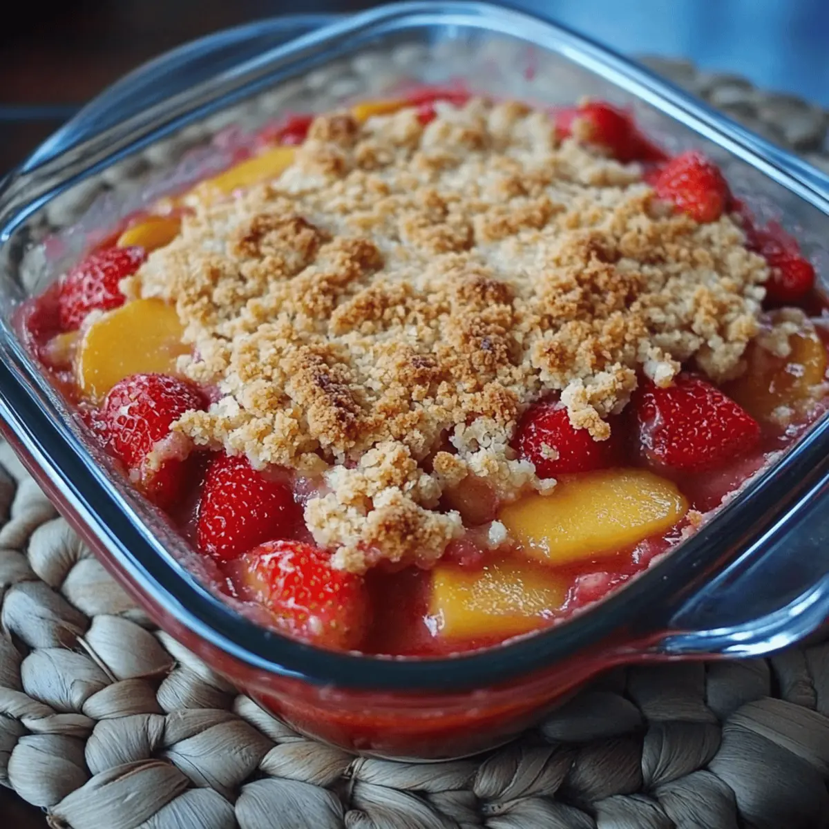 Absolutely! To freeze, wrap the cooled Peach Strawberry Crisp tightly in plastic wrap or foil and place it in an airtight container. It can be frozen for up to 3 months. When you’re ready to enjoy, thaw it overnight in the fridge before reheating in the oven at 350°F (175°C) for about 10-15 minutes.