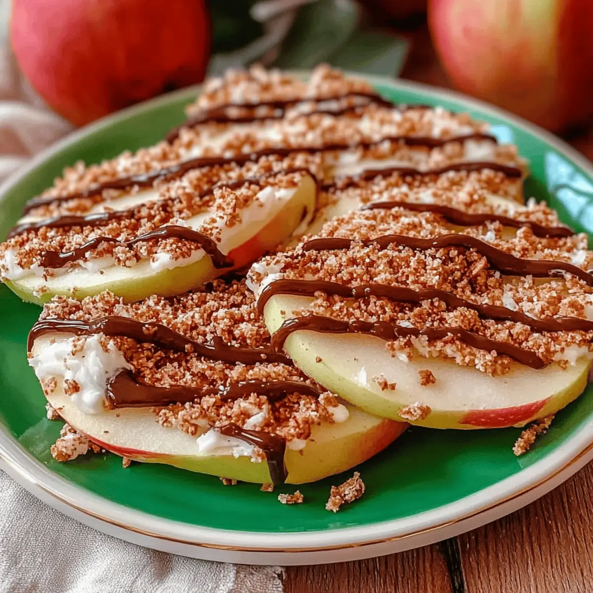 Nut Butter Drizzle: Swap caramel sauce with a thick drizzle of your favorite nut butter for a protein-packed version. The nutty flavor complements the apples, adding richness and depth to each slice.