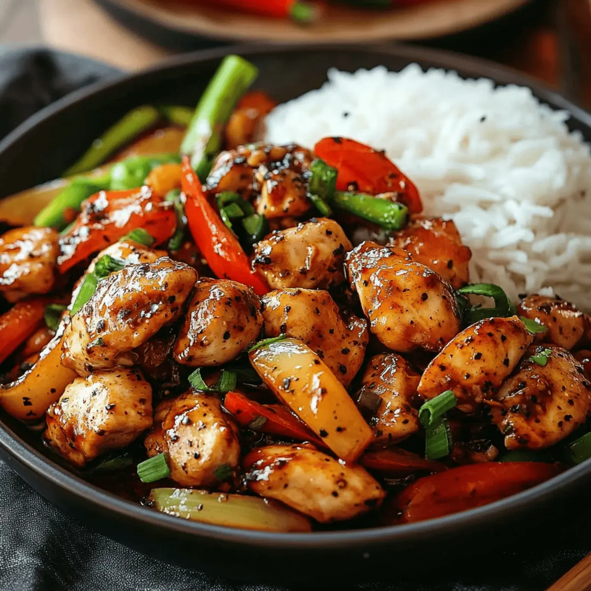 Quick, Easy Preparation: This dish comes together in less than 30 minutes, making it ideal for busy weeknights when time is short. Bold, Zesty Flavors: The freshly cracked black pepper combined with garlic and ginger creates an unforgettable taste experience. Vegetable Boost: Packed with colorful veggies, this stir-fry is a delicious way to add nutrition to your family meals. Versatile Serve Options: Whether over rice, noodles, or on its own, it can satisfy any craving. Crowd-Pleasing Dish: Perfect for family dinners or impressing guests; this Black Pepper Chicken will leave everyone asking for seconds!