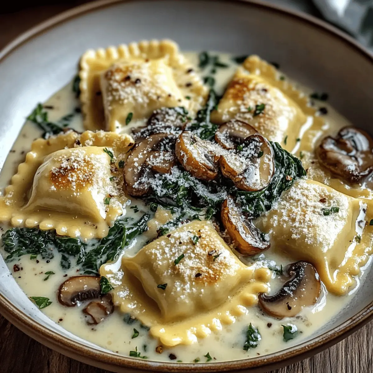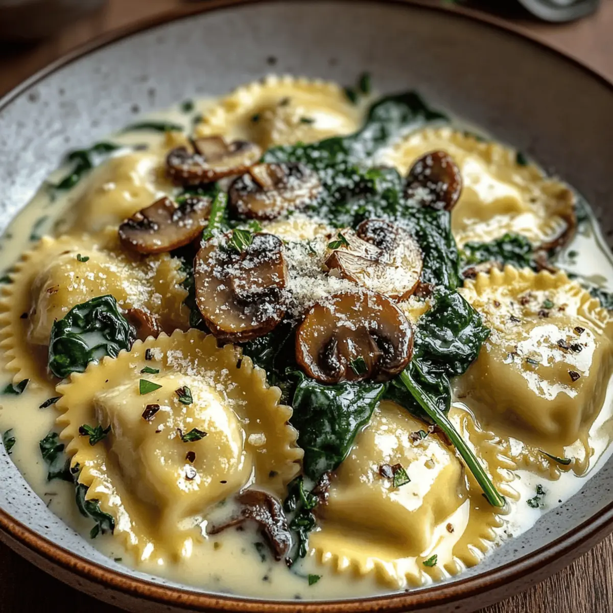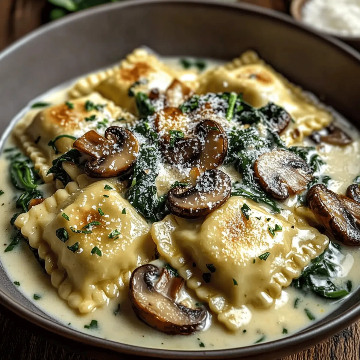 Indulgent Spinach Mushroom Alfredo Ravioli for Cozy Nights