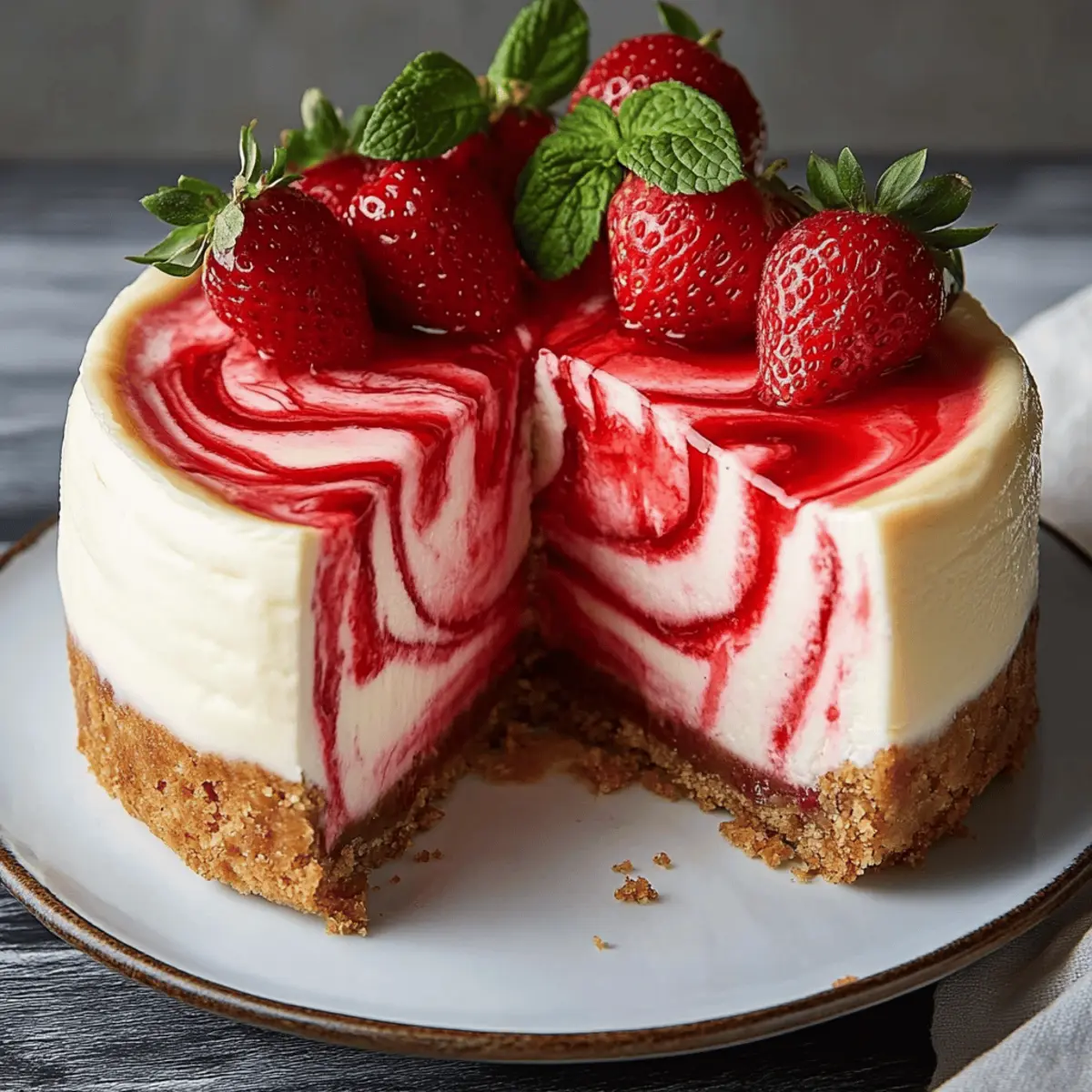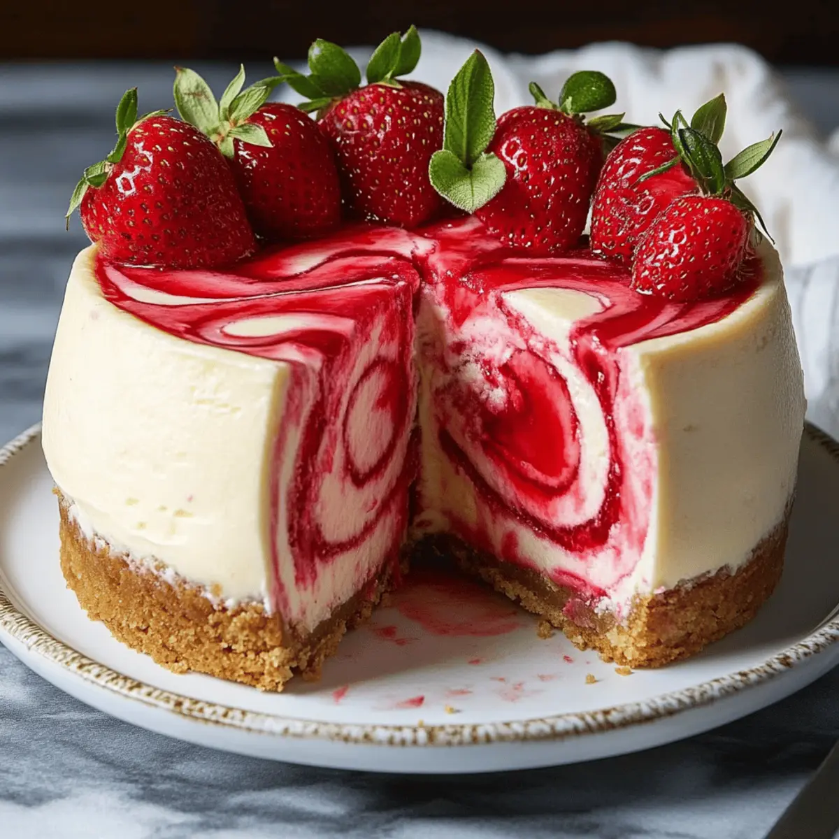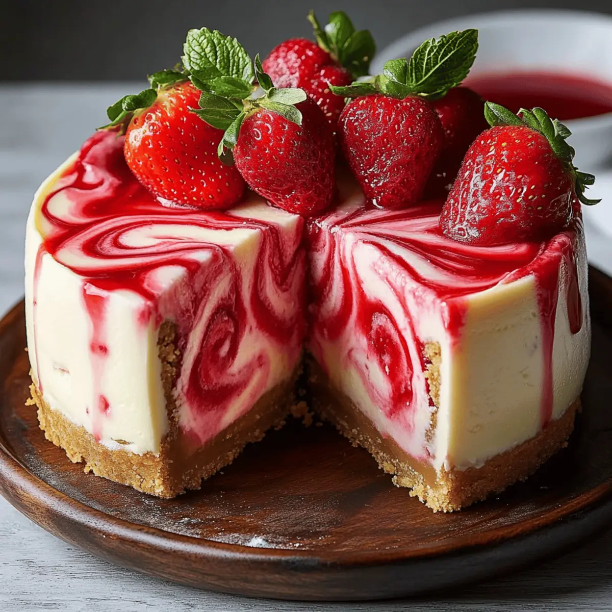 Decadence, meet simplicity! This Strawberry Swirl Cheesecake is not just visually stunning; it’s also easy to whip up in your own kitchen. Versatile flavor, whether you’re a strawberry lover or want to explore with mixed berries, this recipe has you covered. Perfect texture, with a creamy filling and a crumbly crust that’ll have your friends asking for seconds! Impressive presentation ensures that it looks as good as it tastes, making it ideal for any gathering. Plus, you can pair it with a dollop of freshly whipped cream for that extra touch of indulgence—like this fresh berry topping suggestion!